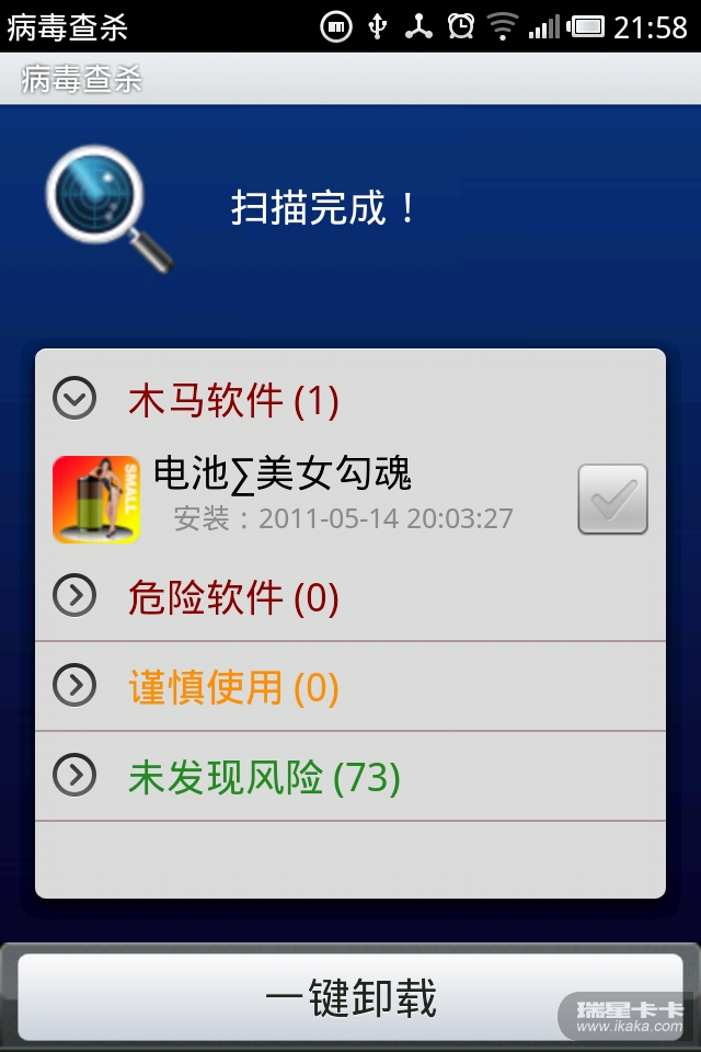 作为手机安全软件,我们第一个先来看看病毒查杀的部分