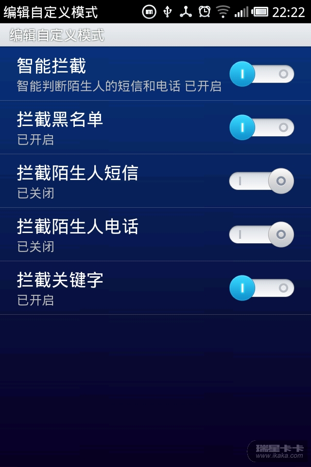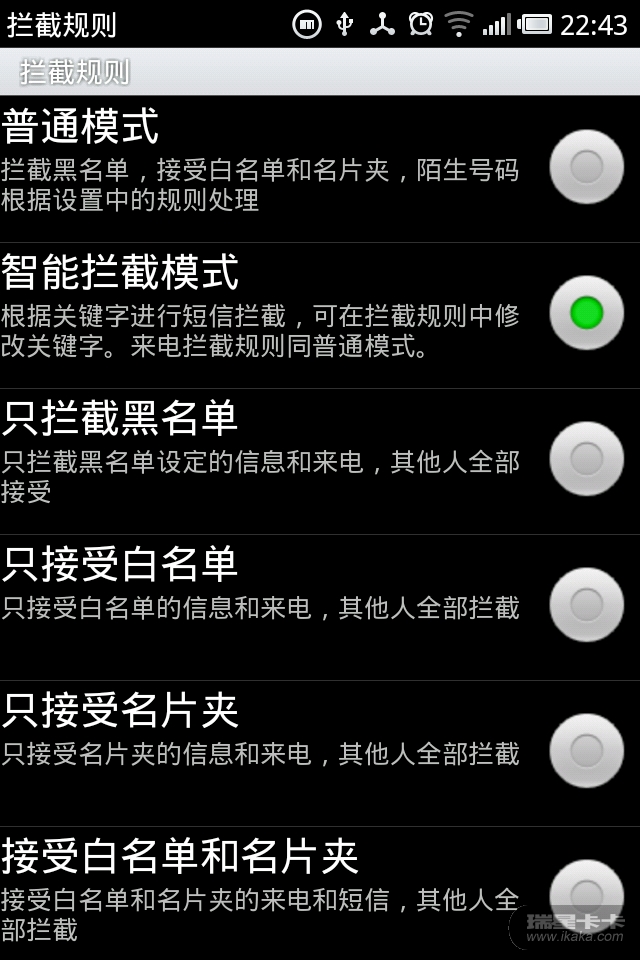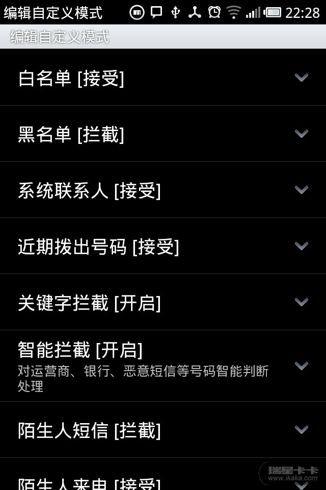 瑞星目前只支持,这几种拒接方式,黑名单得手动定制