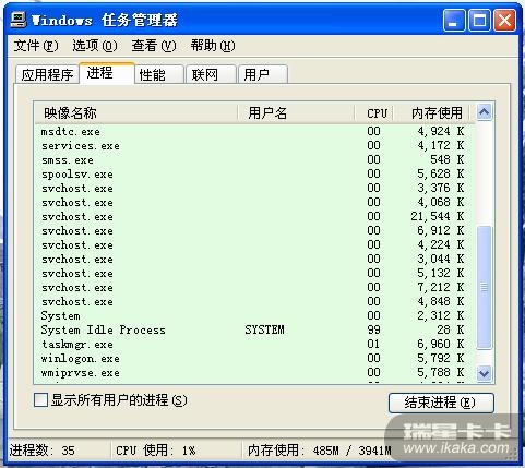 我的系统win2003,今天升级瑞星安全助手后,没做任何优化和修改,导致windows任务管理器用户名只显示一个项目,其他皆不显示,卸载瑞星安全助手后依然如故。