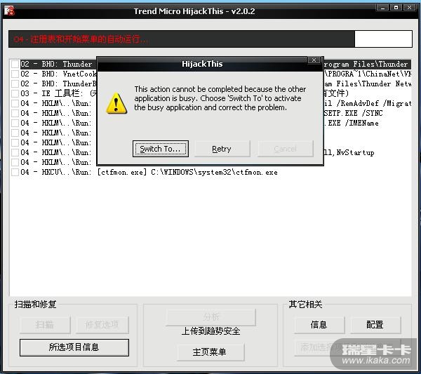 QQ用不了,暴风影音用不了,搜狗输入法总是报错,后来删了,被替换的文件有 mnmsrvc smlogsvc userinit clipsrv mmc 后来修复了,重启,再扫描又发现C:\WINDOWS\system32\wuauclt.exe被替换了,还有N多XXX.tmp,用删除工具(KillBox-CN能用XDelBox1.8版不能)替换原文件又会有新的XXX.tmp出现,SRENG扫描点了WINDOWS更新,扫描日志便会卡住不动,重装C盘还是有毒,没办法,只好来求助了,哪位高手能帮我一下,十分感谢 系统是XP SP3
