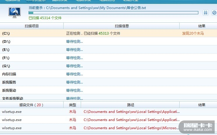 [已解决] 这可糟了,瑞星杀不出来,卡卡杀木马杀出来隔离不了