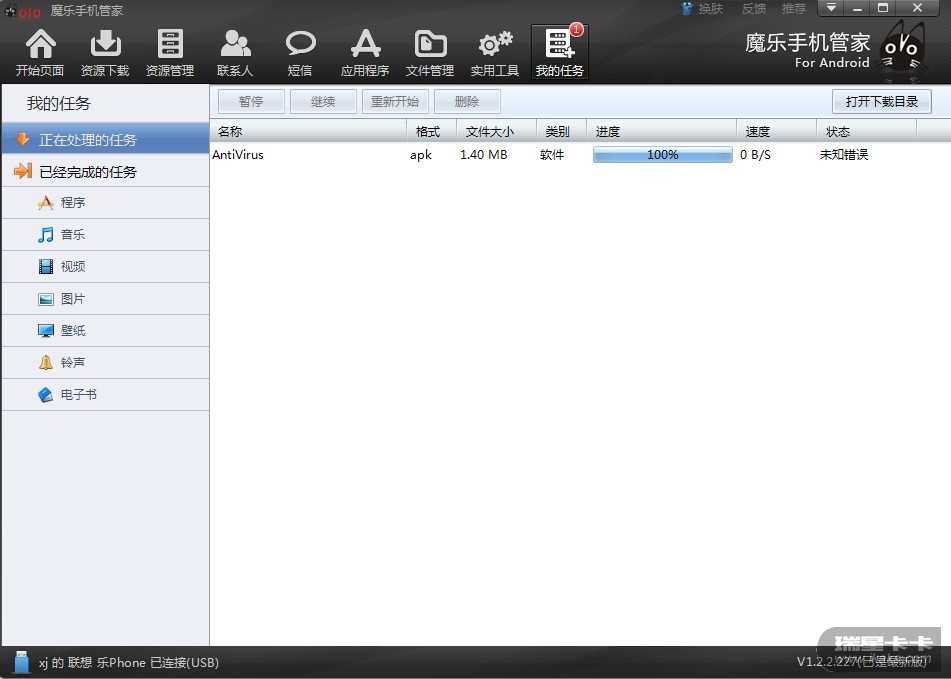 用魔乐手机管家1.2.2.227安装到手机内存时,无法安装,手机自动重启,魔乐端显示未知错误!好郁闷啊,装了3次,次次都要重启手机,等很久后魔乐端显示未知错误!放在手机里直接安装显示“解析包时出现问题”。再次下载任何出现同样错误!后来我去机锋网下载了,就正常安装了!
