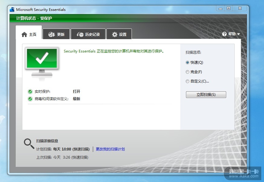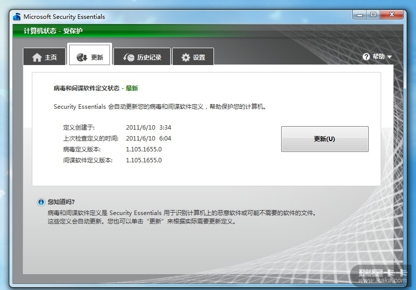 有图有真相~~~~MSE 每天更新好几次~~~~很安静!占用6M内存!!!!因为是 微软自家的 和 自己WINDOWS 系统完美兼容!!!!完全不用担心杀毒能力!!!!
