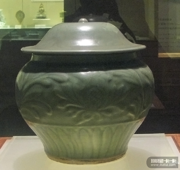 元末明初 龙泉窑青釉花卉纹盖罐 1961年成都明墓出土
