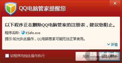 点击允许后 ,且发现 瑞星助手操作 成功 ,但重启 后 发现 QQ 又起来了
