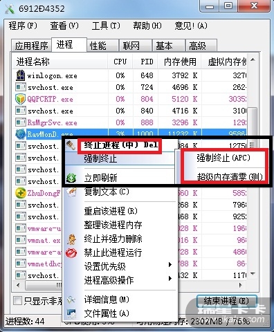 干掉瑞星进程