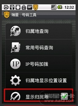 如图所示,下面的显示归属地处,显示不完全,分辨率为:240*320