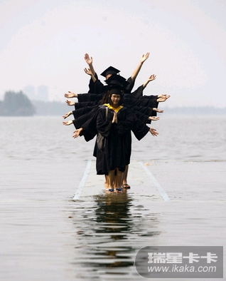 武汉大学毕业生在东湖亲水步道上拍照留念。