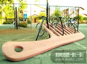 功能型:再看一款倒扣过来的花朵形状的自行车停放架,允许最多10辆自行车停放。它的特点是,如果没有自行车停放,可临时充当能坐着休息的公共雕塑。这样一举两得的设计放在公共场所,是一个不错的选择。