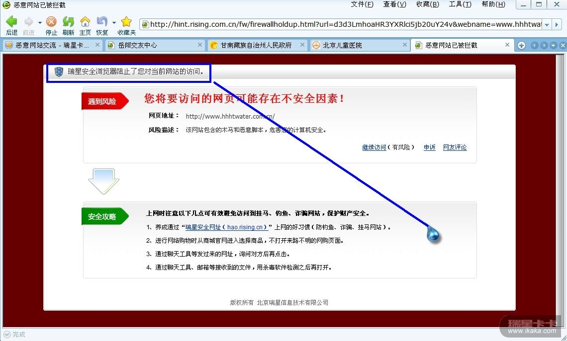 但是这是再开RIS的情况下,显然是RIS没有拦截被安全浏览器器拦截了 注意篮筐提示~!