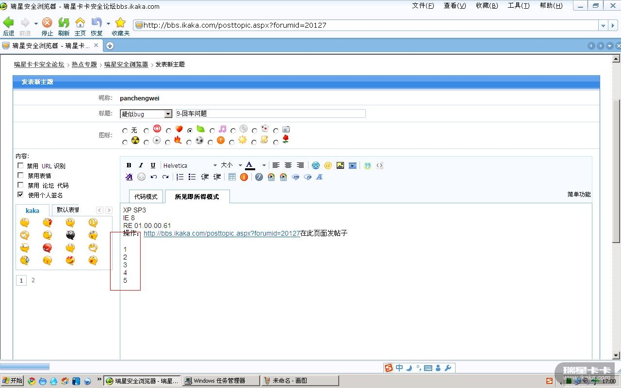 在IE中发帖正常