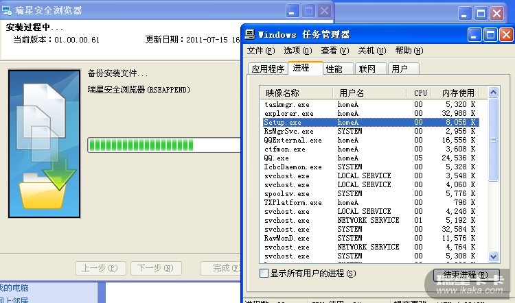 运行安装程序,进行到“备份安装文件”时,安装程序不再进行。查看进程,Setup.exe CPU使用0 。无法退出安装,强制关闭程序后重新安装无效