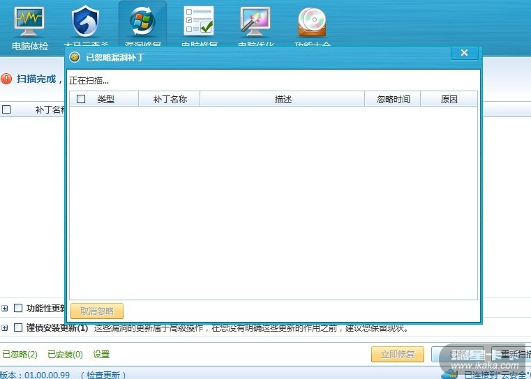 刚才发现安全漏洞,修补完让从新启动,从新启动之后就说忽略了,然后我想查看这个两个补丁也看不到了,如图,怎么回事?一直都好好的