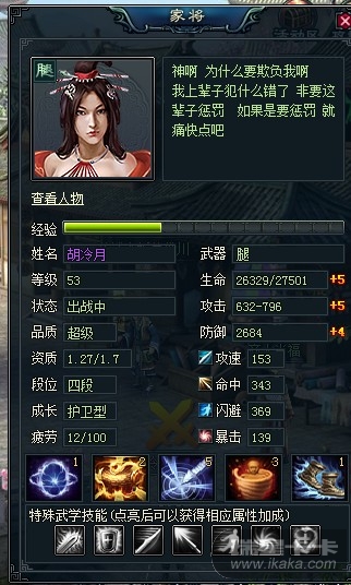 上午家将疲劳48点人物装备全穿 无需要修整的装备 家将的防为880 下午家将防御2680 无吃东东 有图