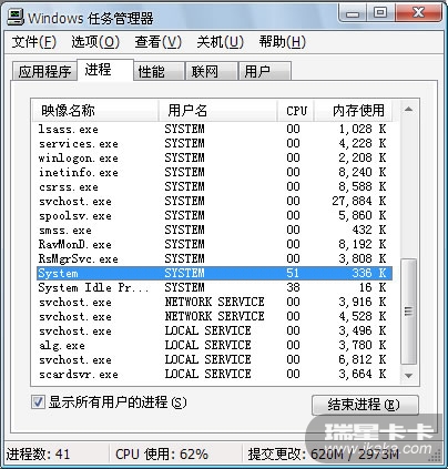 突然发现系统运行非常迟钝,打开任务管理器发现System进程的CPU占用率一直保持在50%左右。