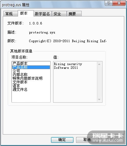 点击Module查看文件属性发现protreg.sys是瑞星的组件之一!