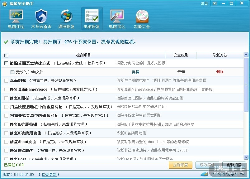 瑞星安全助手误删桌面宽带连接