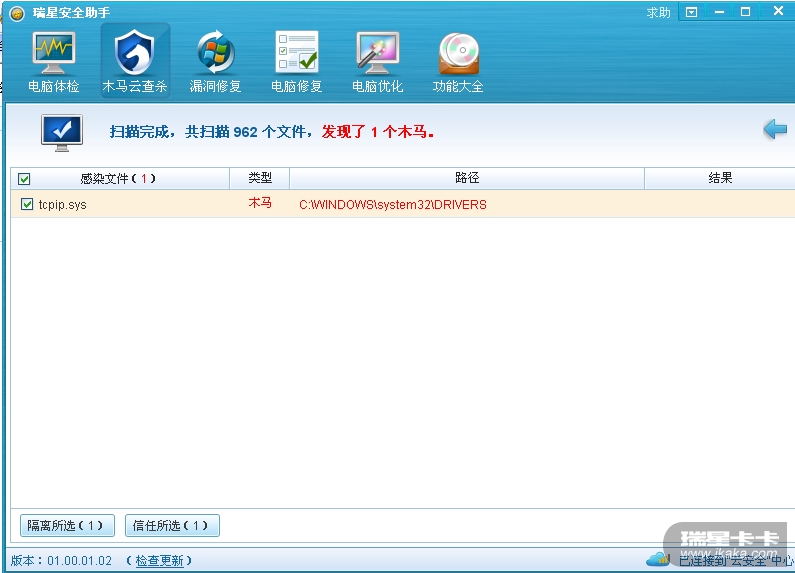 请您将瑞星安全助手升级至最新版本查杀判断。