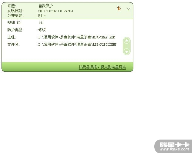 这是什么意思??自已拦截自己的进程??上图是瑞星全功能安全软件的日志。。。。