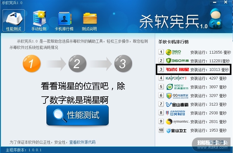 用杀软宪兵测试 , 瑞星的监控卡机严重 请改进!!!