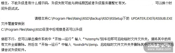 2.如仍有问题 ,可尝试卸载全部瑞星软件,包括软件部署系统,重新安装,再升级。