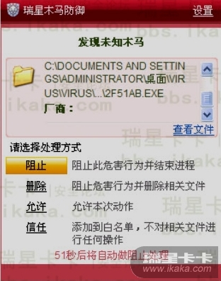 如果是木马防御提示的,您直接点击【信任】,即自动加入到木马行为防御白名单中了