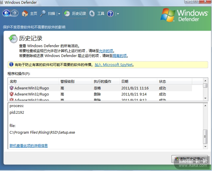 回复: windows defender查出一个Adware:win32/Rugo,说是警报级别“高”
