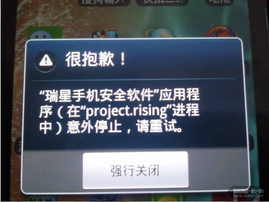 来电话后就弹出这个错误,之后瑞星手机软件就彻底崩溃每隔2分钟弹出一次!!!!!