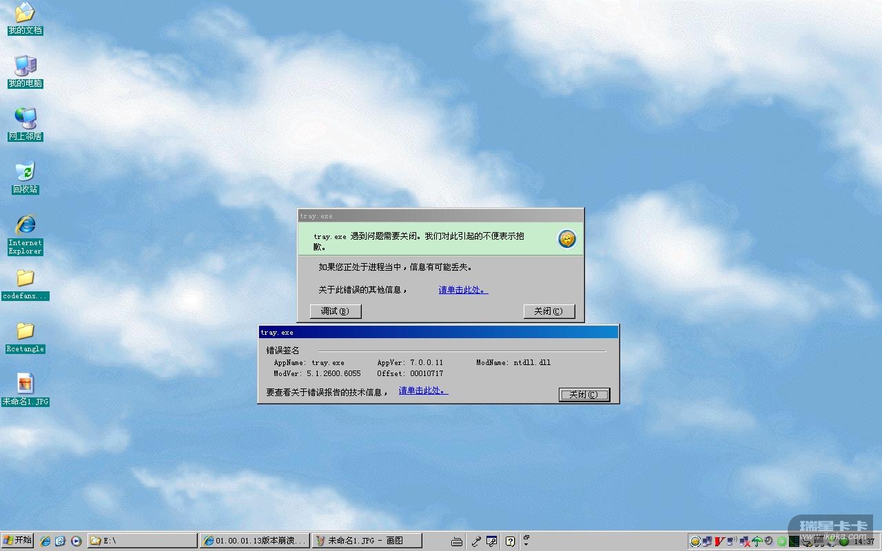13版本在升级后也不会崩溃,在重新启动后一段时间后崩溃,在任务管理器中结束tray.exe后,重新启动瑞星安全助手托盘后一段时间同样会崩溃
