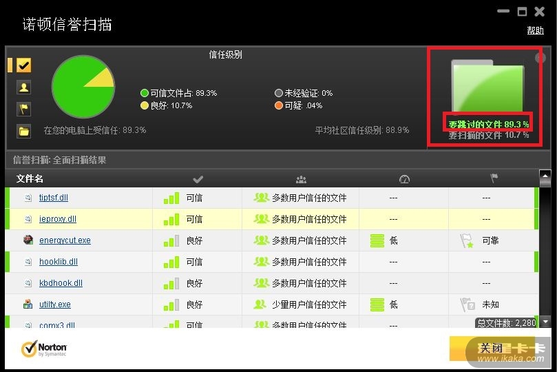 约 90%的 文件 ,因为是 安全的  ,都被 诺顿 自动略过了!!!