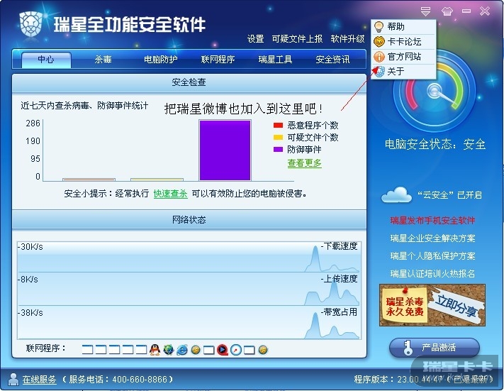 就是把瑞星官方的微博也加入到这里以及所有瑞星产品。(如图)