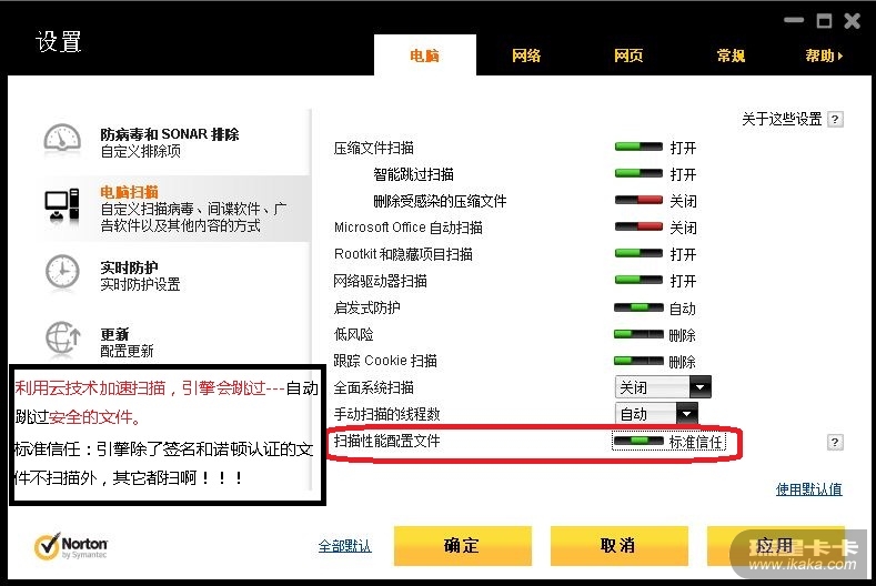 诺顿的 监控 和 扫描 使用了 云技术,即 引擎在扫描时 会智能跳过安全的文件。