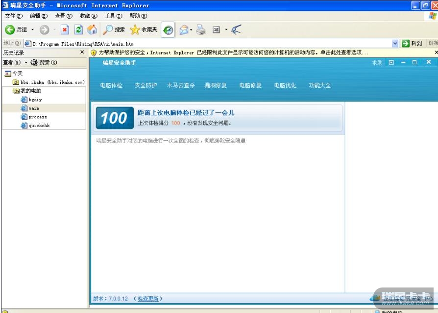 安全助手的界面显示目前是基于IE内核的,这个正常。