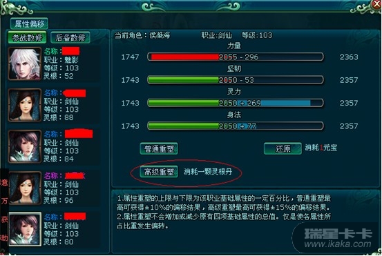 还原功能可还原不满意的属性到重塑前的属性,还原需要消耗