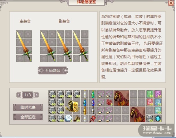 普通装合成需要3个与待合成装备一致的装备,且他们的品质必须不小于待合成品质,例如必须用3个同名紫装才能和待合成紫装相融合。我们把待合成装备成为
