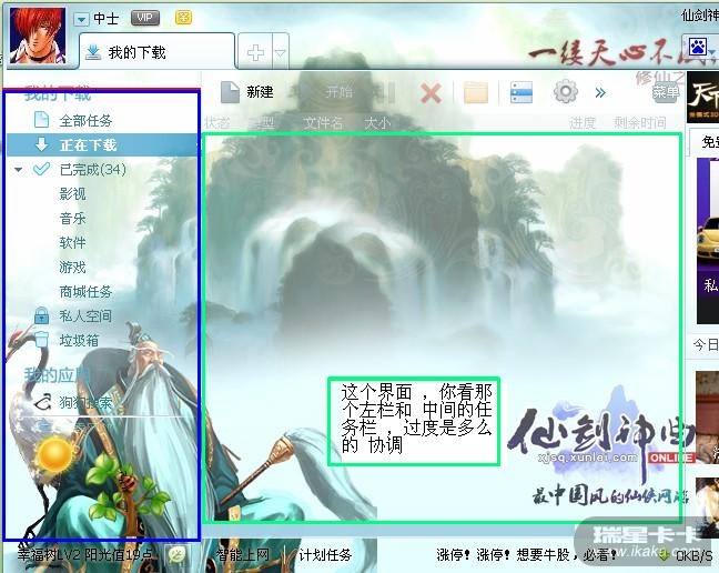 迅雷 蓝色的 框 是 左栏 ,中间的 框是 任务栏 ,他们过度的 很协调