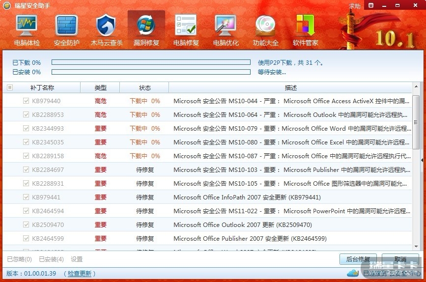 不保留用户配置文件修复瑞星安全助手试试。如果下载漏洞仍有异常,请您提供以下信息: