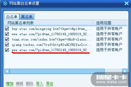 最近两天上网不管是打开IE还是打开火狐浏览网页时,IE都会时不时地自己打开一个“一淘”网上购物网页http://www .etao.com/?pid=mm_11760149_1989319_9274681&upsid=1323157277_4t2_360886027,虽然在防火墙中的“恶意网址拦截”的黑名单中进行了设置(如图),但下午还是会弹出这个“一淘”网上购物网页,于是我再次将它加入到了黑名单中(图中划红线处),想请问一下:为什么这个“一淘”网上购物网页加入到黑名单中,IE还是会自己打开它?