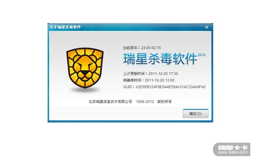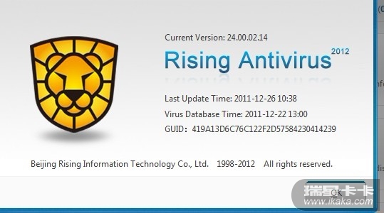 公测期间内,用户安装瑞星杀毒软件2012后,在产品界面“关于”菜单中找到抽奖码(GUID),