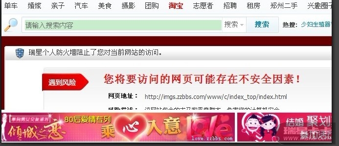 在我们郑州论坛顶部嵌入了一块ifarme 广告代码模块,为什么瑞星个人防火墙就给阻止了呢,官方看到后,请给予答复!