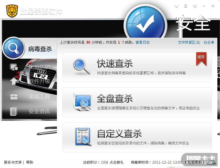目前瑞星的版本,内置三套皮肤;同时提供给用户自定义换肤功能。但现在问题是:如果使用瑞星内置的三套皮肤,其生效后瑞星外观和设置菜单是一致的。但如果用户使用了自定义换肤功能,会出现表里不一的情况,瑞星外观是用户的自定义皮肤,但设置菜单却是瑞星的内置皮肤,影响整体美观。