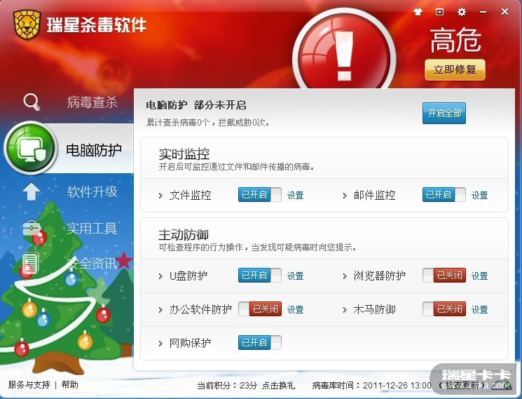 2012版瑞星杀毒软件在虚拟机里无法打开全部监控