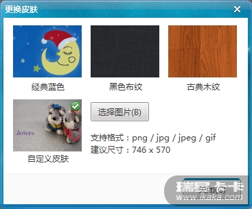 瑞星杀毒软件2012的特色之一是支持自定义皮肤。这个功能也是网友们期待已久的功能。目前,这个功能仍然不够完善。用户在选择好图片后,无法选择显示的区域。以上图为例,我选择了一张有两只小玩偶的图片作为皮肤,但是却无法完整显示两只小玩偶。因此,建议在选择好图片后,假如图片的大小超过建议的图片,可以允许用户选择显示的区域,那么我就可以选择合适的区域来显示两只小玩偶,即下图所示的蓝框效果。并且,建议可以选择透明度。