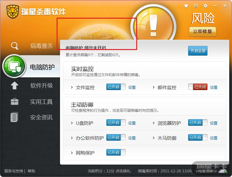 瑞星杀毒软件2012测评报告——2011年12月26日