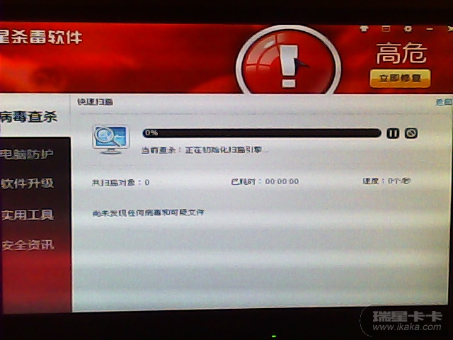 如图,主界面点击快速查杀,RAV2012就是一直显示初始化扫描引擎没有反映(非假死状态)!