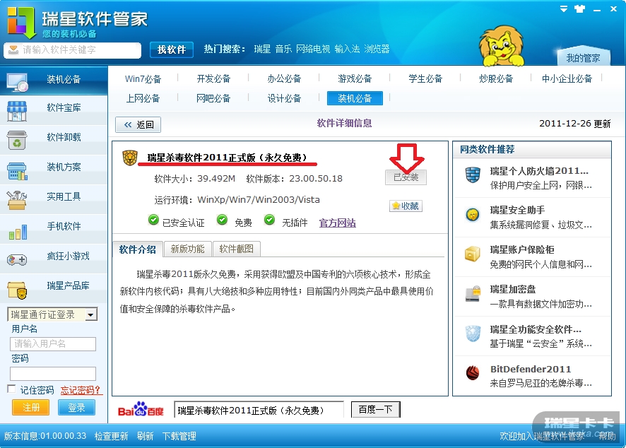 瑞星杀毒软件2011