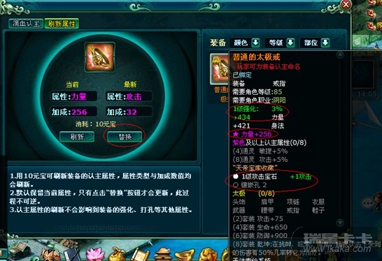 刷新装备认主属性可随机获得属性类型和加成数值。