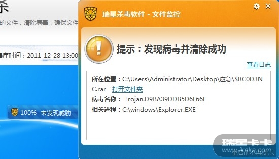 今天打开瑞星日志查看了一下,发现瑞星把自己的文件查杀了(如图)
