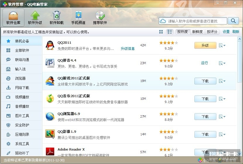 聊聊瑞星2012、瑞星软件软甲的界面设计:先看下360、QQ、金山的界面设计(安全卫士、软件管家之类的界面)
