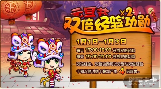 从元旦开始,新年的欢庆气息就将布满弹弹王国。元旦的三天假期里,《弹弹堂》将开启双倍经验、双倍功勋活动,而且,双倍功勋,双倍功勋活动可以与双倍经验、功勋卡叠加产生4倍效果。弹友们,元旦不会无聊啦!